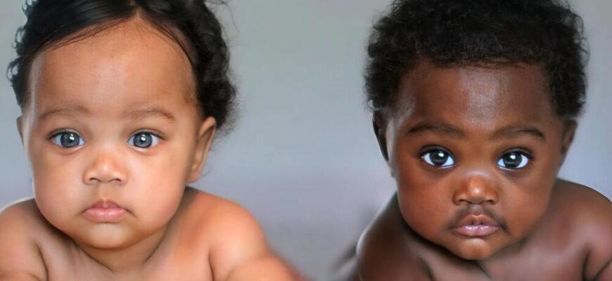 Estas gemelas nacieron con colores de piel opuestos, una característica extremadamente poco común 😱 Una tiene la piel clara y rizos castaños, mientras que la otra nació con un tono mucho más oscuro y un cabello negro y abundante 😱